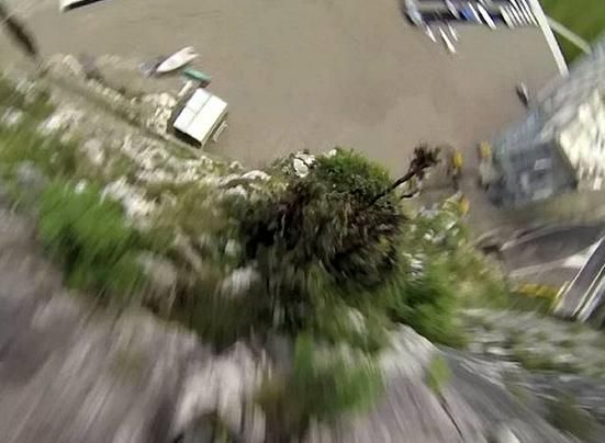 Šokējošais atgadījums iemūžināts arī video - kamera bijusi piestiprināta pie vīrieša ķiveres. Neticamā kārtā anglim izdevās tikt cauri vien ar niecīgiem ievainojumiem uz kājām un potītēm.
