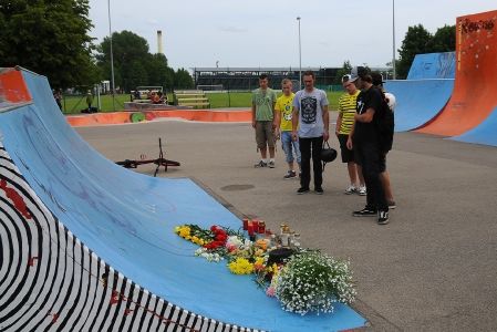 Svētdien Ventspils skeitparkā tika nolikti ziedi sportista piemiņai; traģēdijas dēļ paredzētās Ghetto Games sacensības tika atceltas .